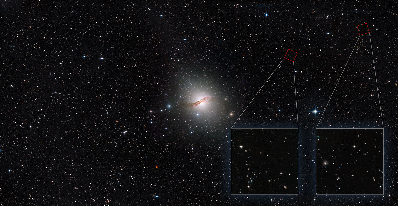 Conforme nos alejamos de las partes centrales de NGC 5128, la luz estelar de la galaxia se hace pobre y muy difusa, da paso a lo que se llama halo: la aureola de estrellas más externa de una galaxia. Casi todas cuentan con uno, pero tienen diferentes propiedades de tamaño y tipos de estrellas.
