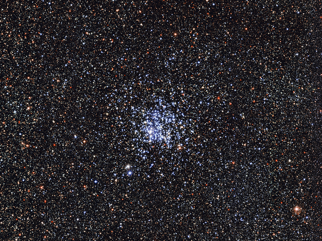 NGC 6705, como también es llamado (objeto número 6705 en el New General Catalog), revela un campo repleto de estrellas azules y blancas y presenta una de las mayores concentraciones estelares de su tipo.