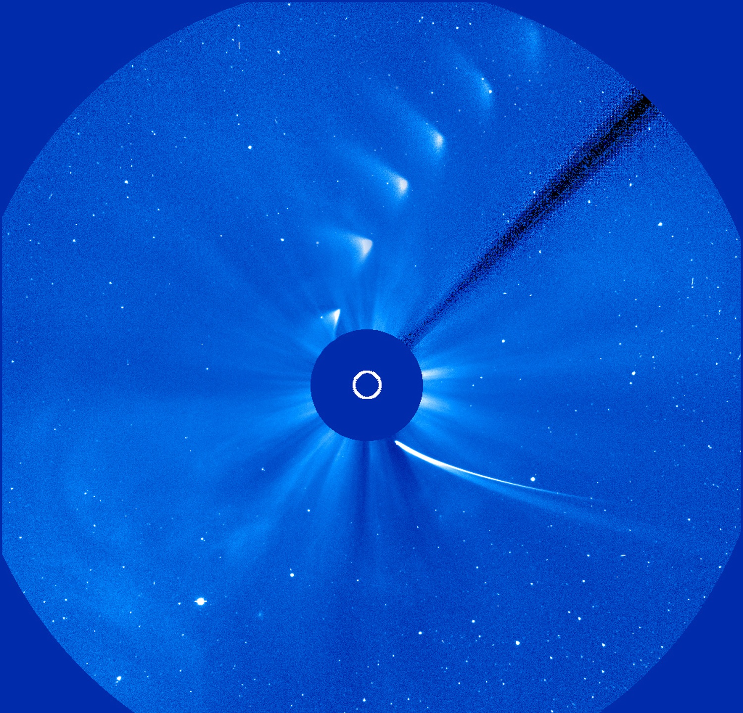 Un testigo directo de la debacle de ISON fue el Observatorio Solar y Heliosférico (SOHO) de la NASA/ESA. La imagen que presenta hoy ESA —en una especie de homenaje póstumo— es la suma de lo ocurrido entre el 28 y el 30 de noviembre del 2013.