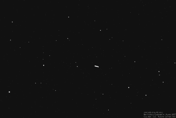 Un cálculo sencillo nos puede dar una idea de su movimiento: si se desplaza en forma aparente a 22” por minuto y lo fotografiamos durante 90 minutos (una hora y media), el asteroide se habrá movido unos 33’, es decir, el tamaño aparente de la luna. ¡Así de rápido va!