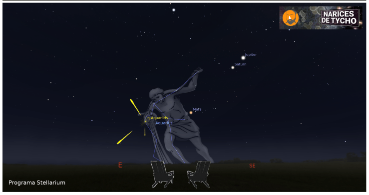 En particular, los meteoros Eta Acuáridas irradiarán desde la constelación de Acuario, pero pueden aparecer en cualquier parte del cielo. Para mejor orientación, observa a unos 40 grados sobre el horizonte, en dirección Este (por donde sale el Sol), de las 3 am hasta el amanecer, del 4 al 6 de mayo.