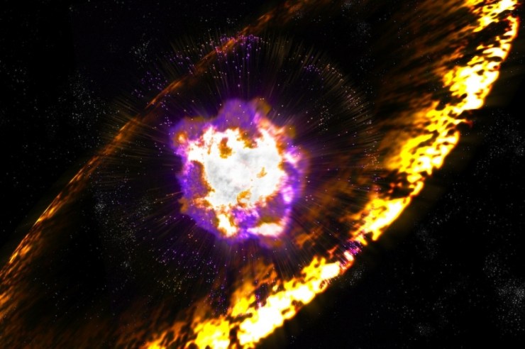 Por otro lado, el agujero negro progenitor de 85 masas solares también resulta muy extraño. De acuerdo con la física de la evolución estelar, después de que el núcleo de una estrella masiva intenta fusionar hierro, ya no produce presión para soportar las capas externas, entonces la estrella colapsa por su propio peso y genera una explosión llamada «supernova por colapso del núcleo». Esto puede generar un agujero negro.