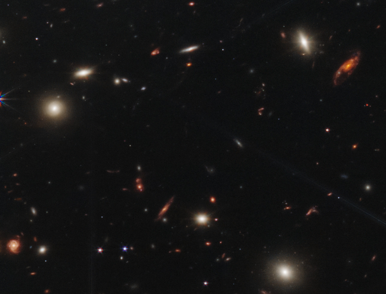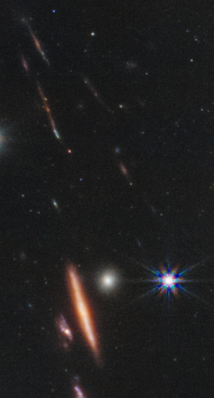 Las poquísimas estrellas en el campo las podemos diferenciar por los picos de destellos, el resto es un mar de galaxias, miles de ellas en la vastedad del Universo. Para poner en contexto el área de la imagen, equivale al campo visual de un grano de arena a la distancia de nuestro brazo extendido. ¡Simplemente abrumador!