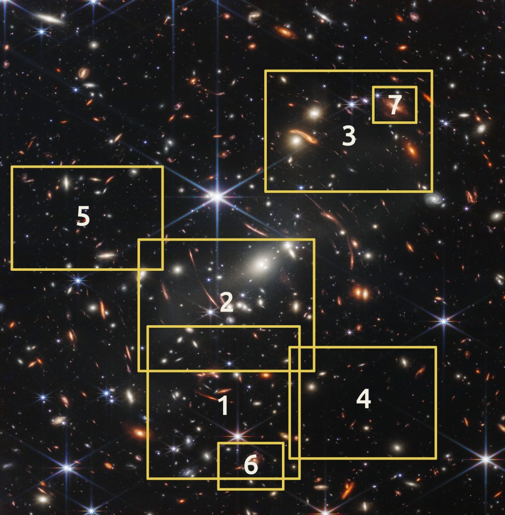 El campo profundo fue capturado por la cámara Near-Infrared Camera (NIRCam) y es una composición de imágenes en diferentes longitudes de onda, totalizando 12.5 horas de exposición. La imagen anterior de SMACS 0723, tomada por el Hubble, le llevó semanas!