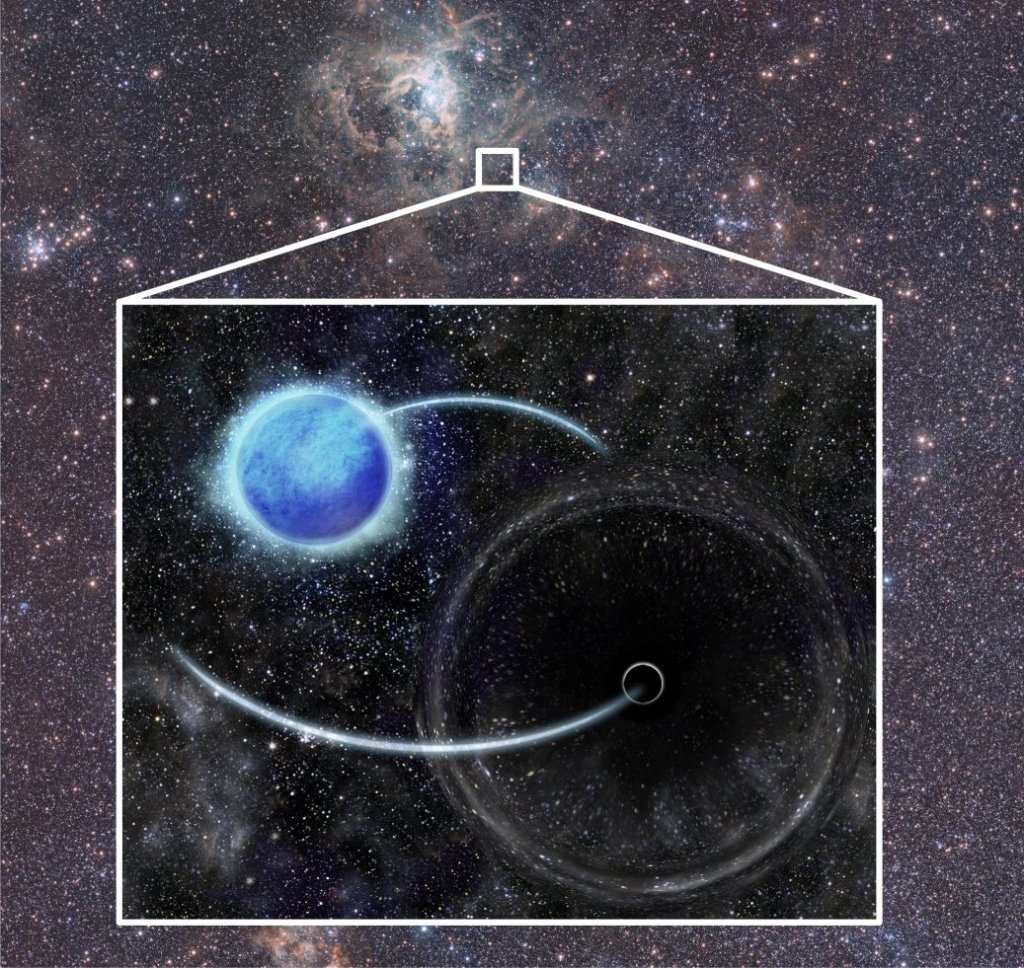 Bueno, pues se acaba de publicar un trabajo con observaciones acumuladas desde 2008 de sistemas binarios en la Gran Nube de Magallanes, donde se encuentra un agujero negro sin mayor actividad en rayos x y girando mutuamente con una estrella masiva llamada VFTS 243.