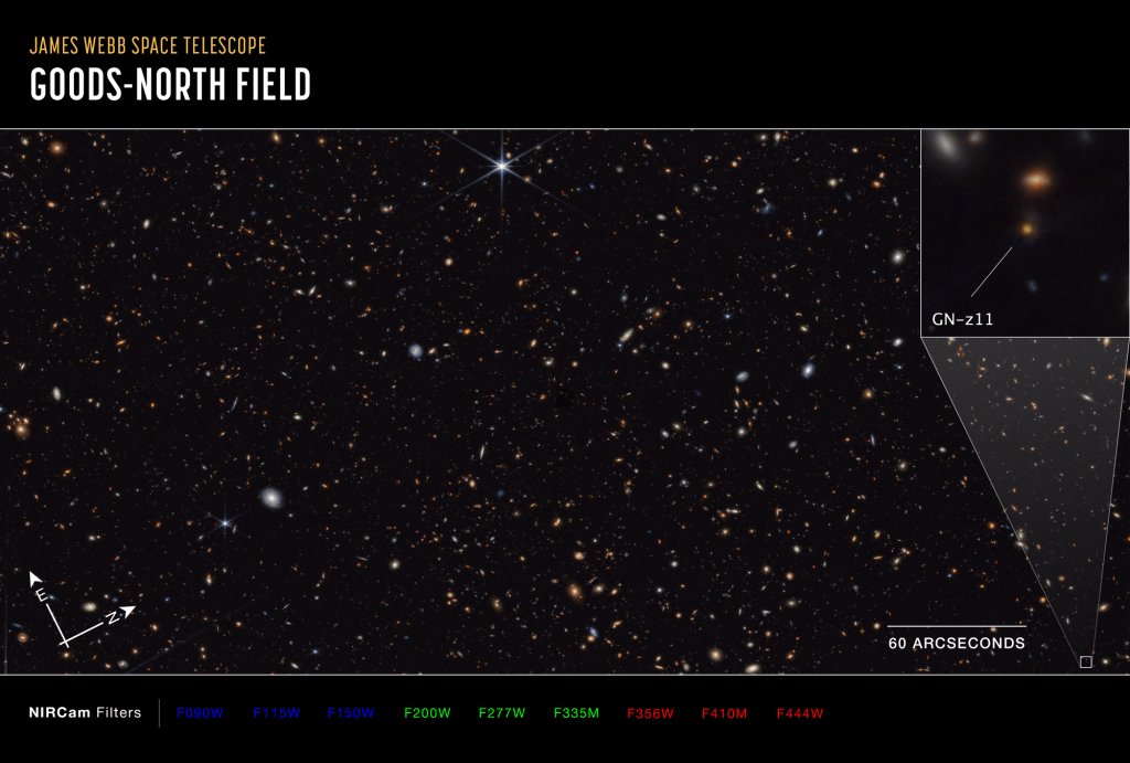 Un segundo equipo científico utilizó el espectrógrafo NIRSpec en infrarrojo cercano, también del Webb, para encontrar que una masa gaseosa hecha casi exclusivamente de helio rodea a GN-z11.