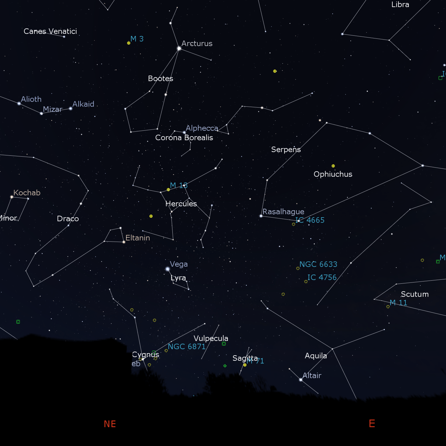 En resumen, la «nueva estrella» aparecerá muy cerca del semi-círculo de Corona, en dirección de la constelación de Hércules.