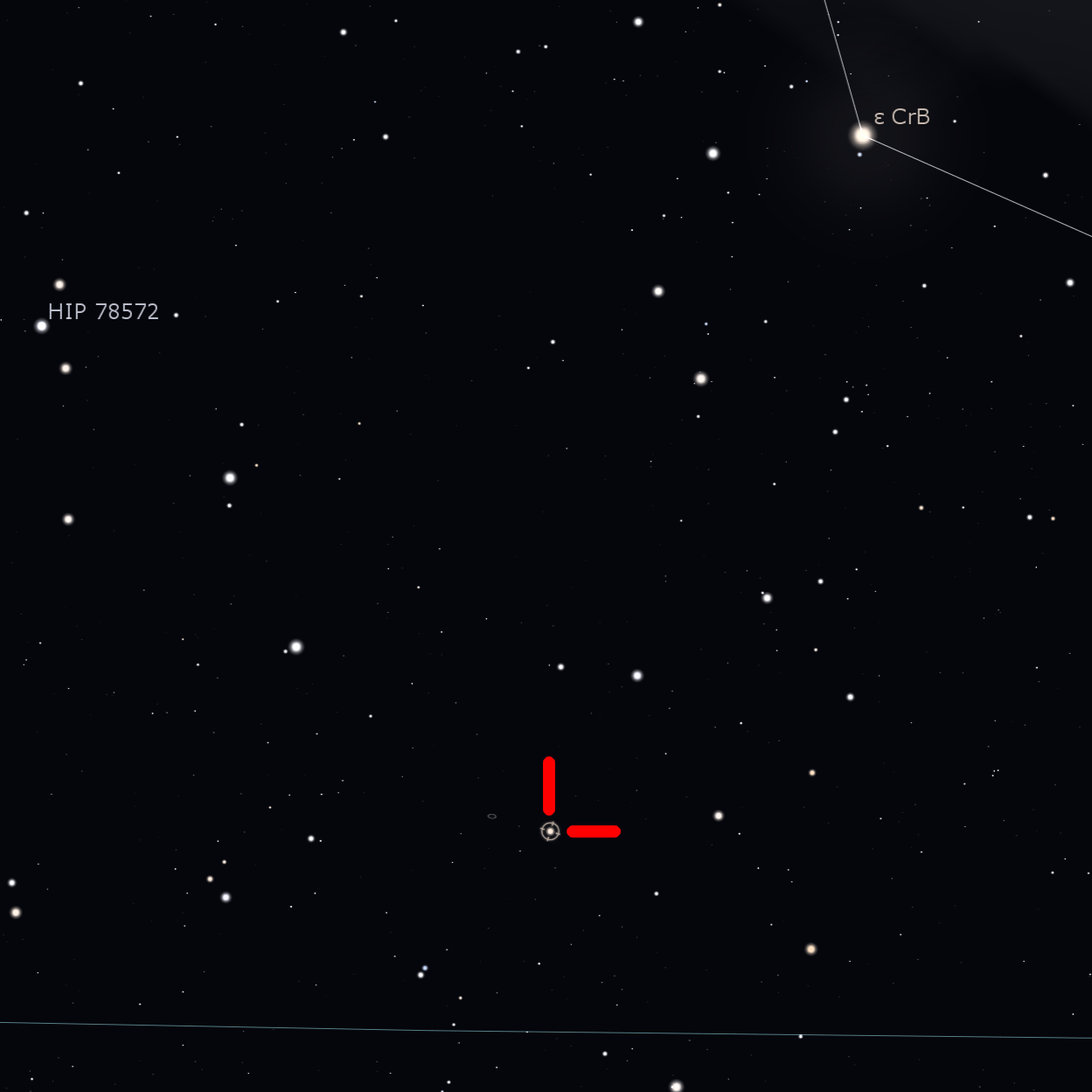 Primero tienes a Gamma Coronae Borealis (γ CrB), luego a Delta Coronae Borealis (δ CrB) y sigues Épsilon Coronae Borealis (ε CrB). Una vez ahí, intenta formar un triángulo rectángulo invertido entre δ CrB y ε CrB, donde T CrB forma el vértice faltante.