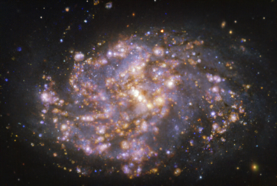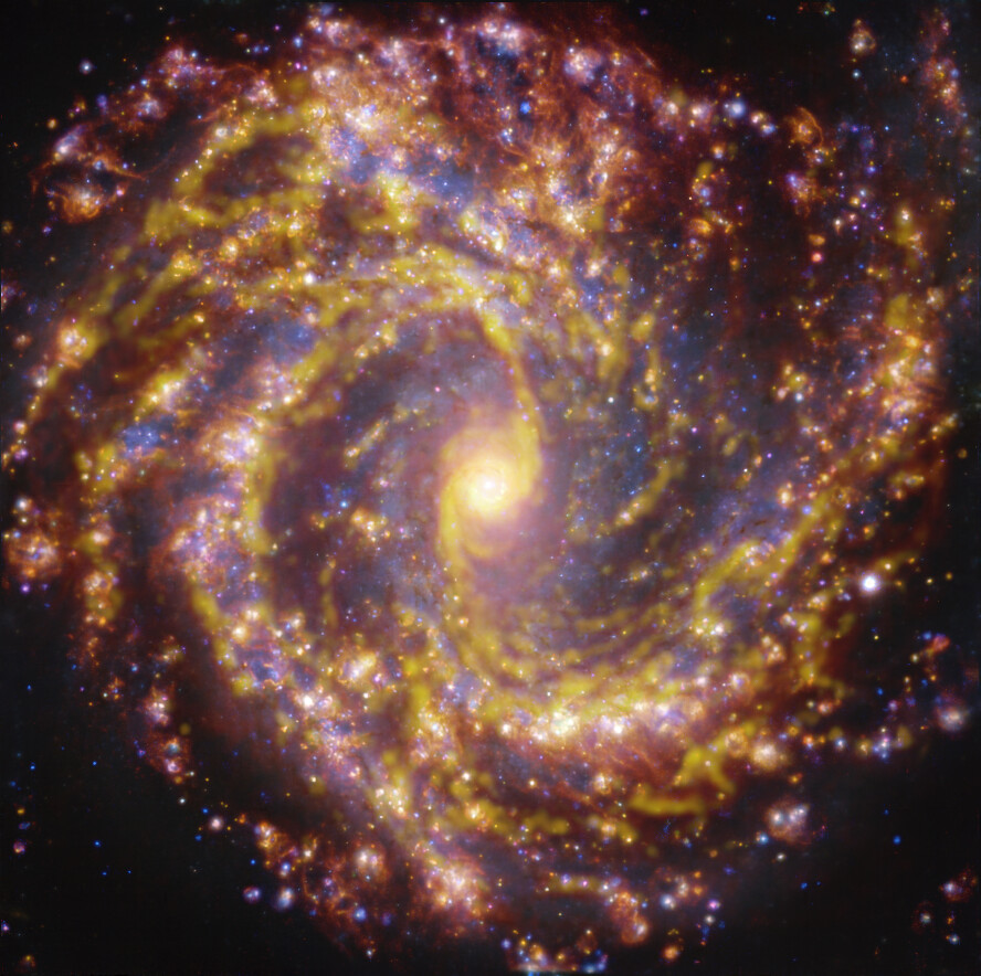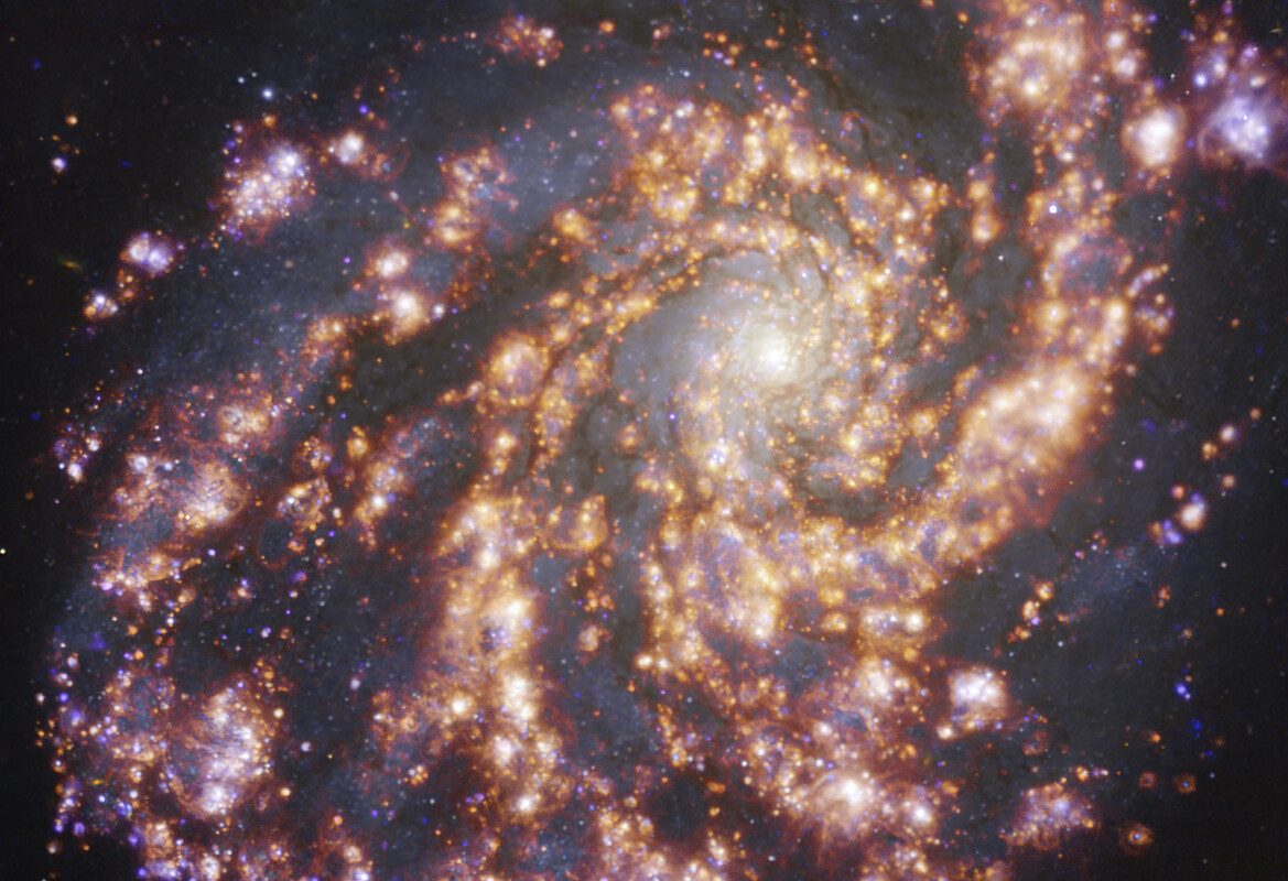 Estas imágenes son parte del sondeo PHANGS (Physics at High Angular Resolution in Nearby GalaxieS), que investiga galaxias cercanas en todas las longitudes de onda.