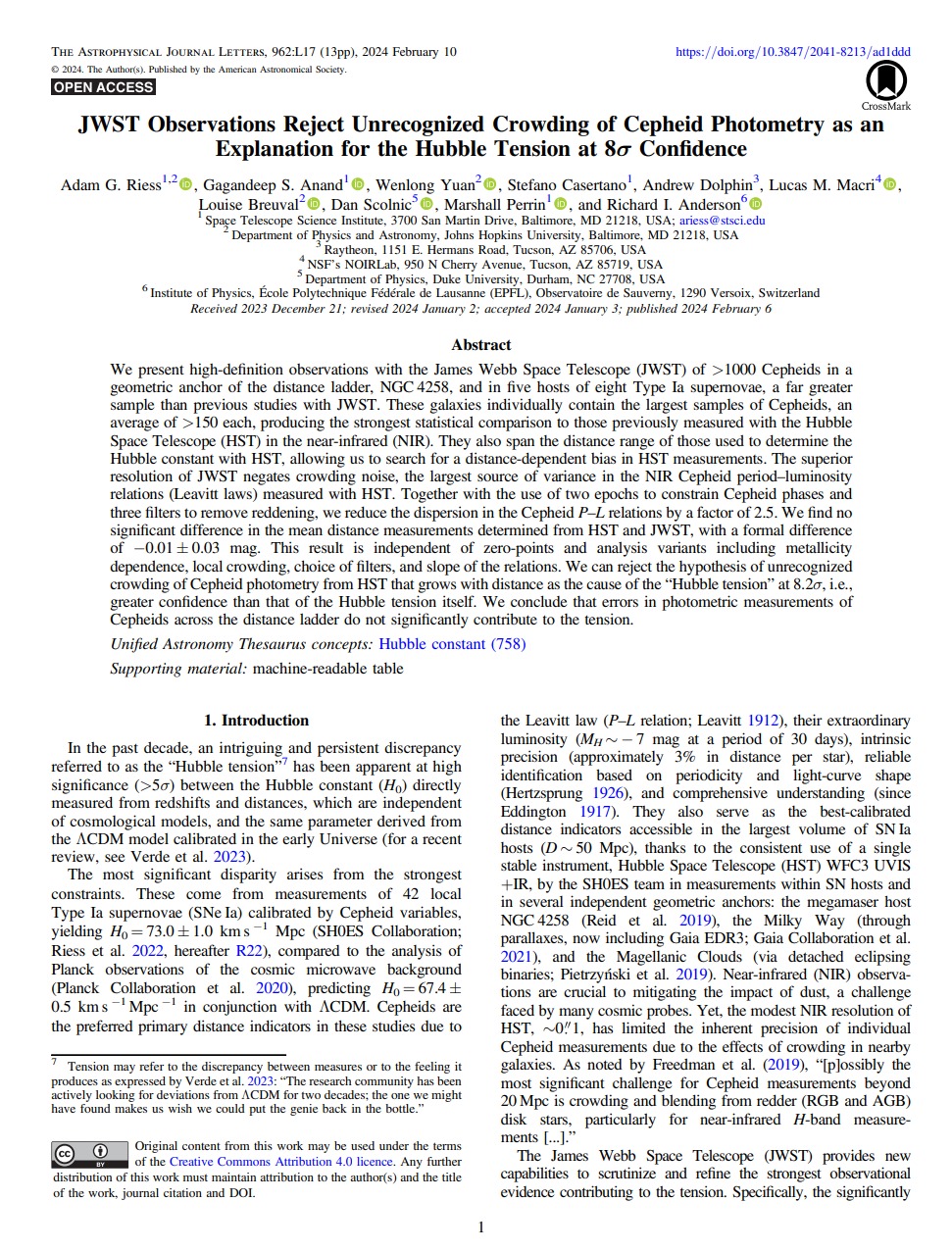 Hace muy poco, a inicios de 2024, un equipo de astrónomos liderado por Adam Riess, físico de la Universidad Johns Hopkins y Premio Nobel por co-descubrir la expansión acelerada del Universo, obtuvo observaciones adicionales con el Webb para refinar los resultados.