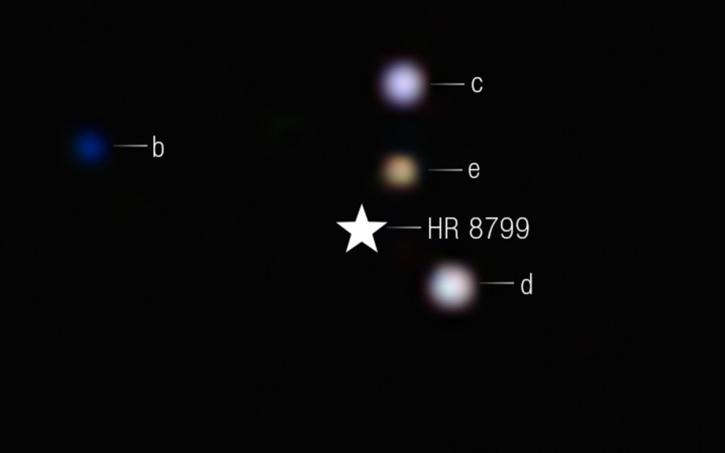 HR 8799 es un sistema a unos 130 años luz de nosotros, famoso por sus cuatro planetas gigantes en órbita. Son mundos jóvenes, apenas unos 30 millones de años, prácticamente bebés en comparación con nuestro sistema solar. Aún calientes desde su formación, emiten mucha luz infrarroja, lo que los hace objetivos ideales para el Webb.