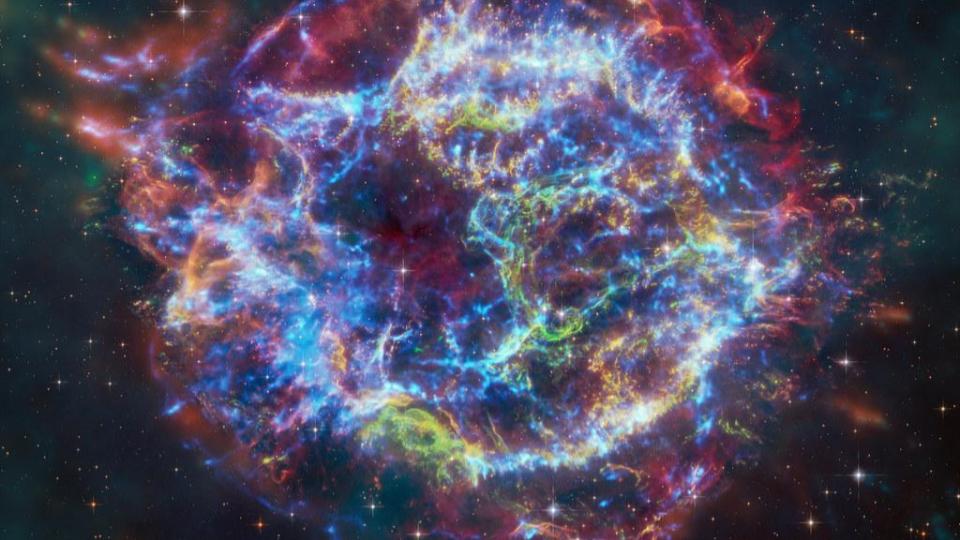Cassiopea A, un remanente de supernova de aproximadamente 340 años de antigüedad, revela con estos modelos una estructura compleja que incluye el enigmático «Monstruo Verde«, una característica descubierta recientemente por el telescopio espacial James Webb. La combinación de datos de Webb y Chandra ha permitido entender mejor el origen de esta estructura y la explosión que creó Cas A.