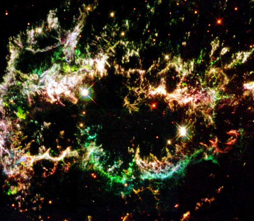 Pero la presencia del «monstruo verde» en las regiones filamentosas de material planteó nuevas preguntas sobre la supernova en su conjunto.