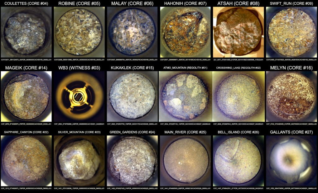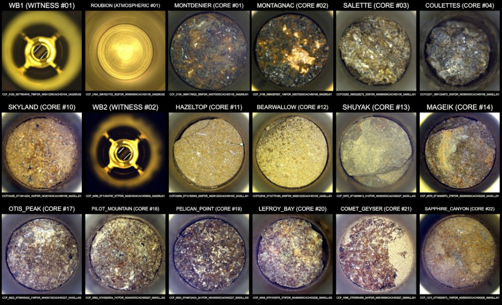 Además de las rocas, el rover ha capturado dos muestras de regolito —el polvo y roca fragmentada que cubre la superficie— y una muestra de la delgada atmósfera marciana. La colección se completa con tres «tubos testigo», que se abrieron brevemente al ambiente marciano para actuar como controles. Estos permitirán a los científicos en la Tierra descartar cualquier contaminante terrestre que pudiera haber viajado con el rover.