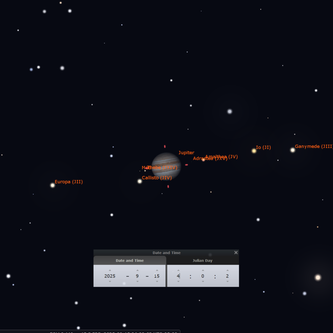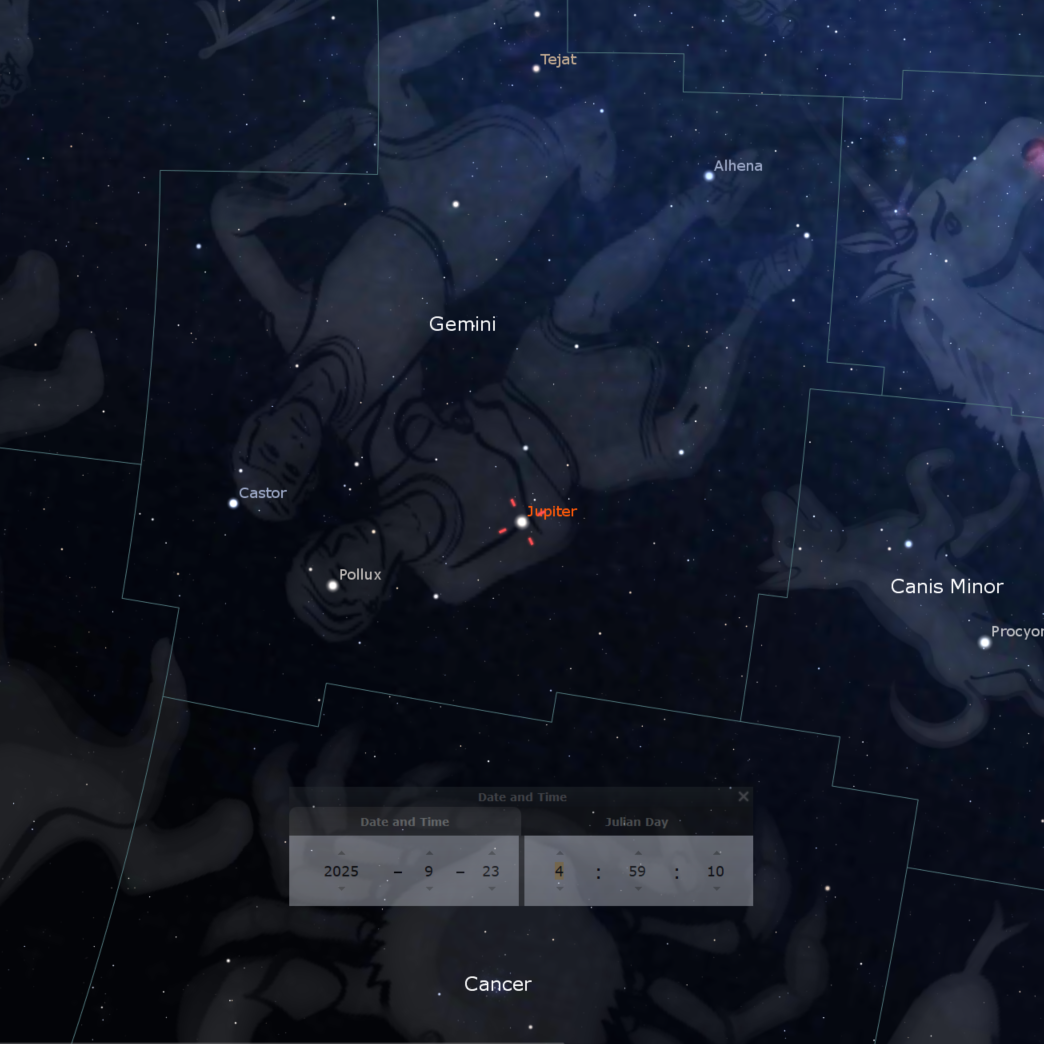 Júpiter dominará el cielo antes del amanecer. Visible desde las 3 a.m. a principios de mes en la constelación de Géminis, brillará con una intensa magnitud de –2.0. Su disco, que crecerá de 34 a 37 segundos de arco, revelará detalles atmosféricos con cualquier telescopio. Su sistema de lunas galileanas también estará muy activo, con tránsitos simultáneos de Ío y Europa en las madrugadas del 20 y 27 de septiembre.